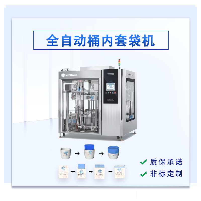 ● 桶内套袋机 MTW-YT40 设计操作简单、故障率低;采用电气控制,从进桶、套袋、翻边、理袋出桶一次同步完成;